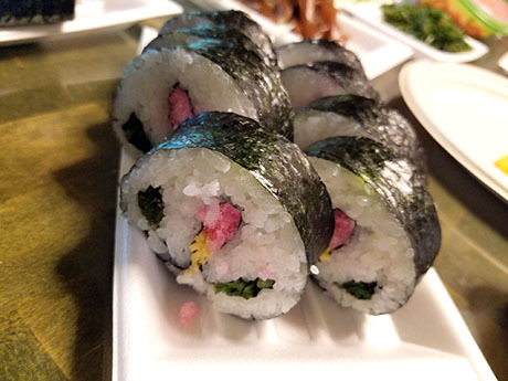昼食には皆さんで作った太巻きを食しながら懇談が行われました。