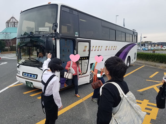 館山駅に集合しみんなでバス移動。