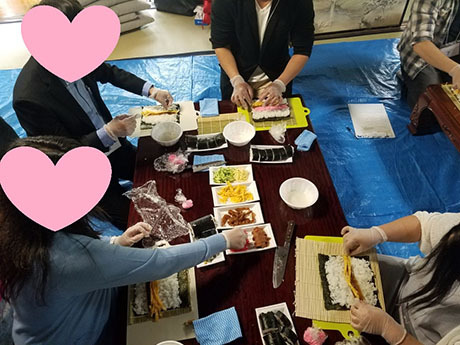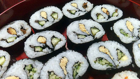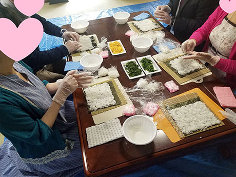 昼食には皆さんで作った太巻きを食しながら懇談が行われました。